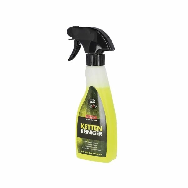 Renser kæden og fjerner slidforårsagende aflejringer i ét trin. Sprøjt blot direkte på kæden og tandhjulet, lad det virke kortvarigt og tør af med en blød børste eller klud, og smør derefter kæden igen med Atlantic-kædefedt med PTFE.