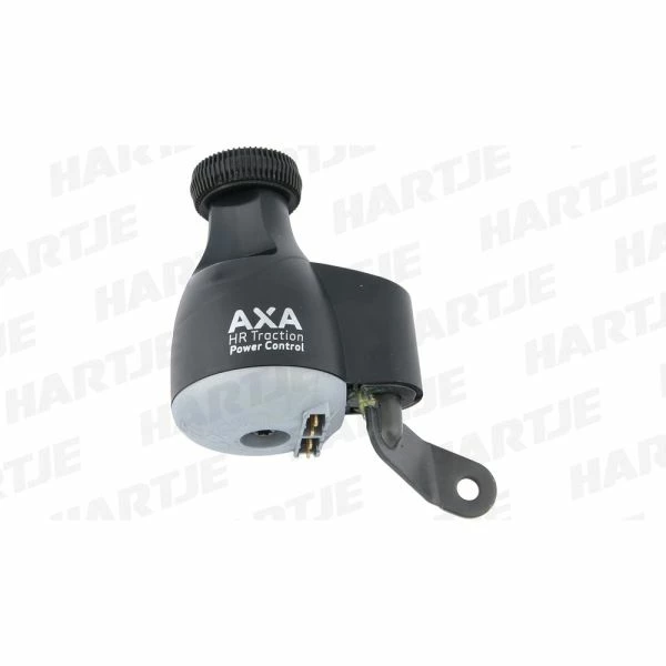 AXA Dynamo “Rear Wheel Traction Power Control” plasthus, sort / sølvgrå 6 V / 3 W, 4 tilslutninger (2x strøm / 2x jord). Letløbende, støjsvag, slag- og stødsikker. Udskiftelig gummirulle, høj effektivitet, testet, med overspændingsbeskyttelse
