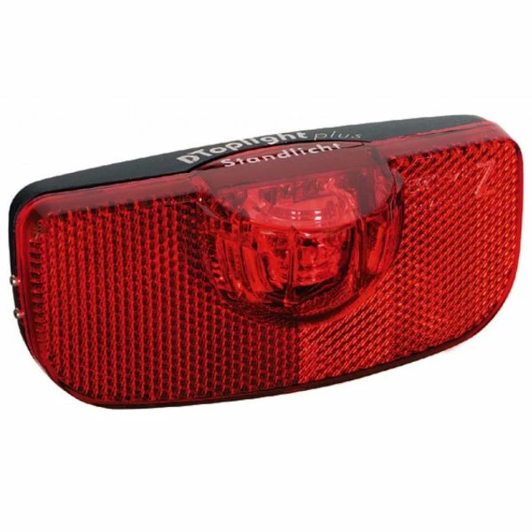 b+m baglygte D-Toplight plus med en ultrahøj lysdiode til kørelys med elektronisk parkeringslysfunktion med 4-minutters slukning med stor reflektor med plug-in-tilslutninger til strøm og jord fås med 50 mm eller 80 mm boltafstandBusch + Müller