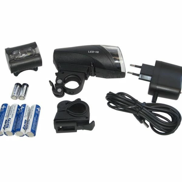 B&m LED genopladelig forlygte Ixon IQ Højtydende LED med 100.000 timers levetid Brillant hvidt lys med xenon-effekt Højtydende komfortelektronik med 90 % effektivitet Integreret kølesystem Kapacitet og indikator for opladningsniveau Fuldt opladet på kun 4-5 timer To omskifterindstillinger: High-Power-tilstand: 40 lux (5 timer) med City-Eco-tilstand, IXON kan skiftes tilbage til de ti lux, som kræves af StVZO i hele 20 timer Sikkerhedselektronik:1) ingen overopladning af genopladelige batterier2) batteridetektion for at forhindre fejlagtig opladning styradapter med hurtiglukning, drejelig og drejelig, forlygte kan også fjernes brug af batterier eller genopladelige batterier muligt (Mignon, AA) den processorstyrede opladningselektronik, der er integreret i forlygten (med minus-delta-U-afbrydelse), gør det muligt at oplade genopladelige batterier med forskellig kapacitet (f.eks. 4 x 2.100 mA).f.eks. 4 x 2.100 mAh eller 4 x 2.500 mAh).