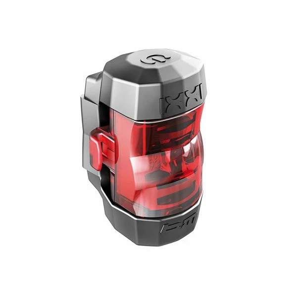 Battery-powered rear light. High output LED. Very bright, large beam angle. Fits all seat posts. 53 mm tall, 31 mm wide. Weight (incl. battery and mount): 35 g.