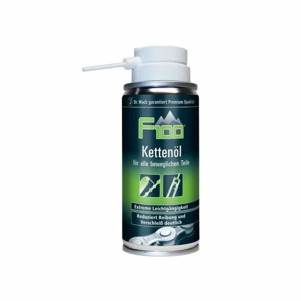 F100 kædeolie til ekstremt jævn drift af alle bevægelige dele til alle dele, der skal smøres på cyklen, f.eks. kæde, affjedringsgaffel, støddæmper, Bowden-kabler reducerer friktionen betydeligt og sikrer ekstremt jævn drift af alle bevægelige dele fremragende beskyttelse mod korrosion og slid meget gode krybeegenskaber