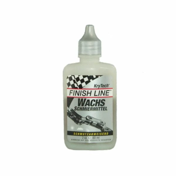 Finish Line’s WAX Lube goes on wet, but dries to a hard, dry, super-slick wax film. No oily greasy film to attract or absorb dust and dirt. DuPont’s metal bonding Krytox® lubricating film in combination with M2 molybdenum, specialized waxes, and more, make our WAX Lube even slicker, quieter and longer lasting. Finish Line WAX Lube is wax lubrication technology at its best.. In fact, Bicycling Magazine says WAX Lube far outscores its competition. The industry’s cleanest, driest, most durable wax lubricant… WAX Lube requires more frequent application, but your drivetrain will remain nearly contaminant-free, so cleaning before relubing is not usually required. Drivetrain parts that stay this clean last longer and work better! A dry, hard wax lubricant that keeps parts clean. Perfect for cyclists who value cleanliness over all else.