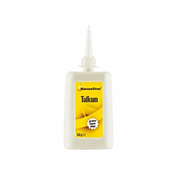 Talc er den perfekte gummipleje til dæk, slanger, pakninger, muffer osv. Du skal blot støve pulveret på ved montering og gnide det let ind, hvis det er nødvendigt. Forhindrer varme- eller aldersrelateret klæbning af blød plast eller latex, f.eks. badehætter, regntøj eller neopren. Kan også bruges til tørsmøring,
