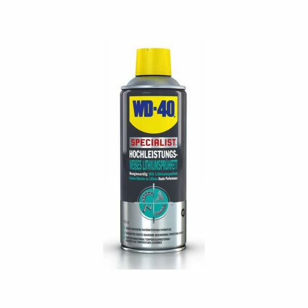WD-40 Specialist High-White-Lithiumsprühfett this thick grease spray allows long lasting lubrication without dripping or running, it is particularly appropriate to reduce the friction of metal parts and thus the connection to maintain consistently, it can also be used for metal compounds under high pressure loads and can withstand temperatures between -18 ° C and + 145 ° C. water and temperature lubricant high protection against rust and corrosion