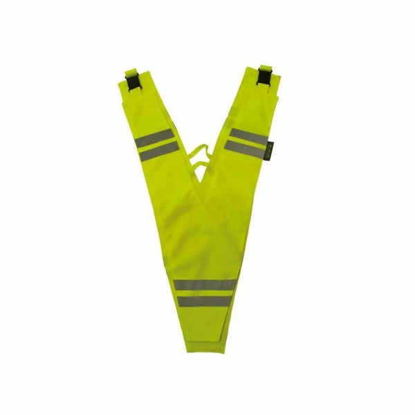 Kompakt refleksjakke; let, praktisk at bruge, garanteret synlighed. – Fluorescerende jakke med reflekterende dele – Sikkerhedsspænder i plast på skuldrene – Længde foran: 53cm – Længde bagpå: 60cm – Med etiket til fastgørelse af navn